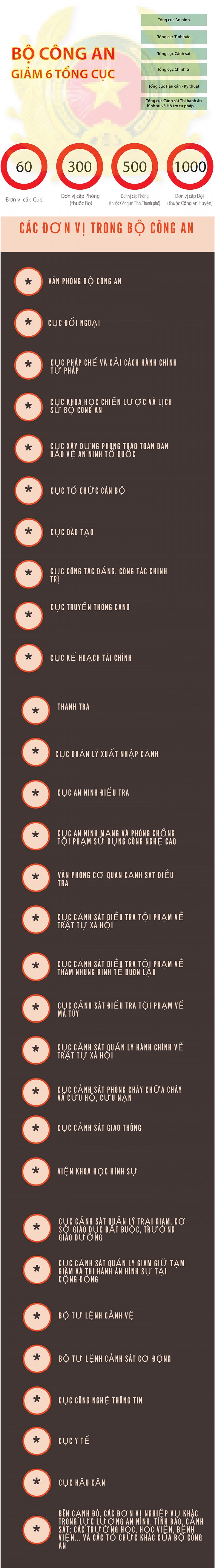 Bộ Công an đã xóa bỏ 6 tổng cục và giảm gần 60 đơn vị cấp cục