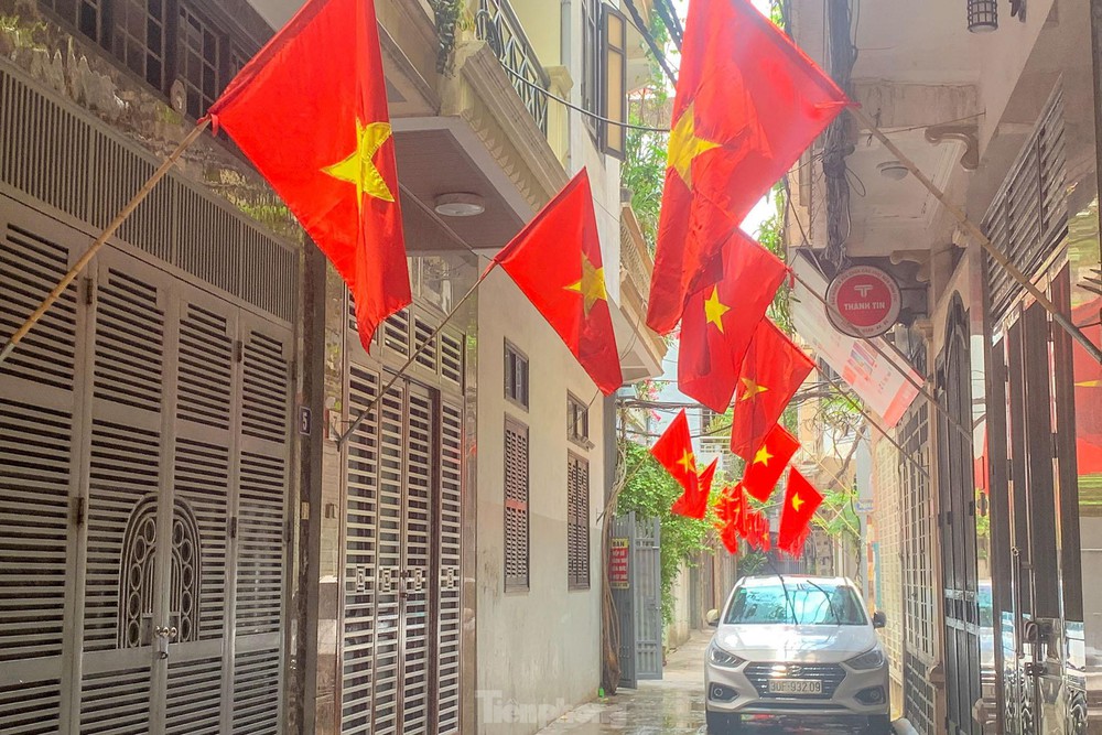 | Ngõ nhỏ, phố nhỏ rực rỡ màu Quốc kỳ. |