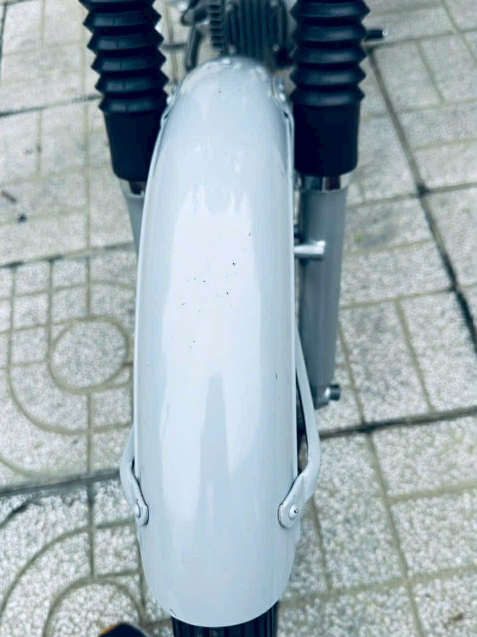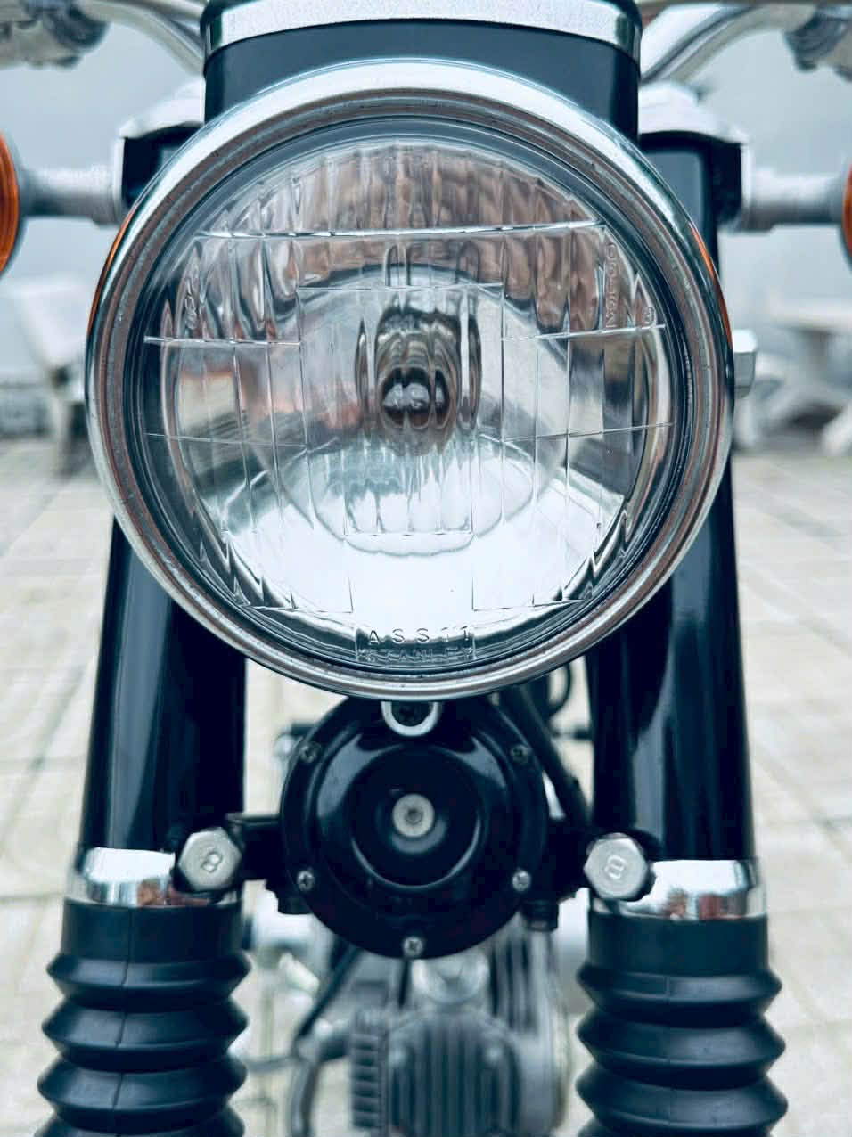 Cụm đèn pha tròn, xi-nhan màu cam cổ điển, tay lái cao và yên dài hai tầng tạo nên dáng vẻ đặc trưng của thập niên 1960. Phần động cơ lộ thiên gọn gàng, lốc máy còn sáng màu, không có dấu hiệu độ chế.